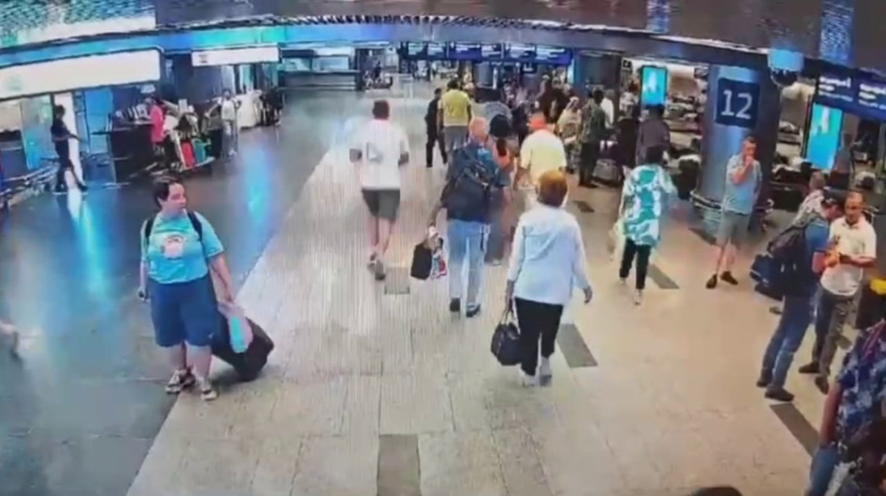 Момент нападения бойца ММА Александра Ларкина на пассажиров в московском аэропорту Внуково ночью 19 июля.