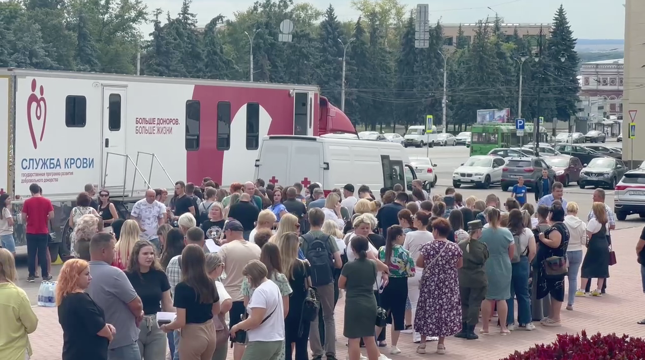 Сотни жителей Курска пришли к мобильной станции переливания крови, чтобы сдать её для пострадавших от обстрелов ВСУ. Люди не перестают приходить — все хотят помочь землякам. Из-за атак украинской армии в области пострадало около 24 мирных жителей, среди них 6 детей.