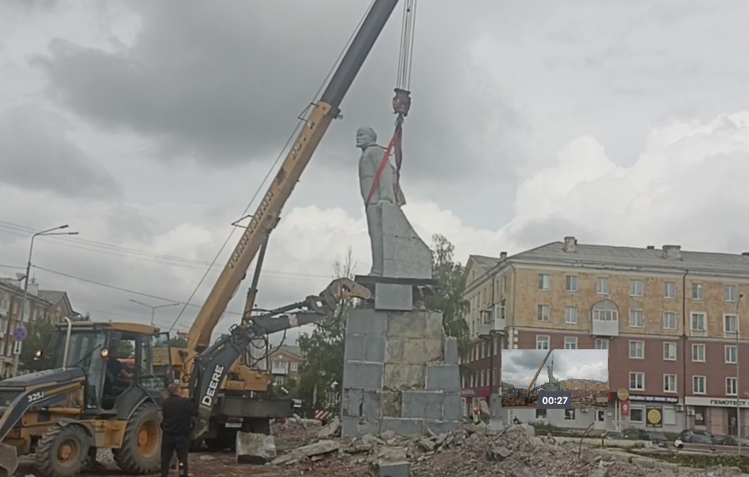 Вынужденная декоммунизация в Свердловской области. Где работники строительной компании больше семи часов пытаются снести памятник Ленину во время реконструкции главной площади Ревды. Но пока что так и не смогли.
