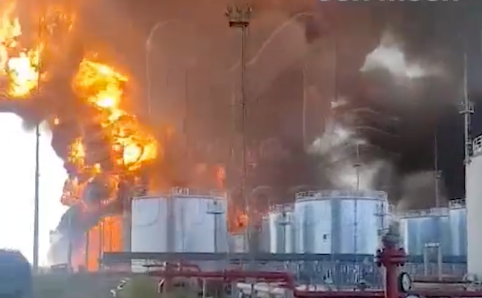 Нефтебаза начала полыхать в шесть утра 18 августа — после прилёта украинского дрона. Со слов местных, огонь добрался до резервуаров, из-за этого город заволокло чёрным дымом — люди жалуются на то, что стало тяжело дышать.