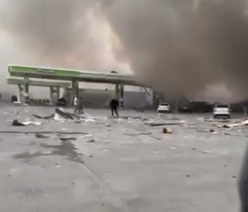 Горит задняя часть заправки — в том месте находился баллон. Очевидцы говорят, что взорвалось именно там.