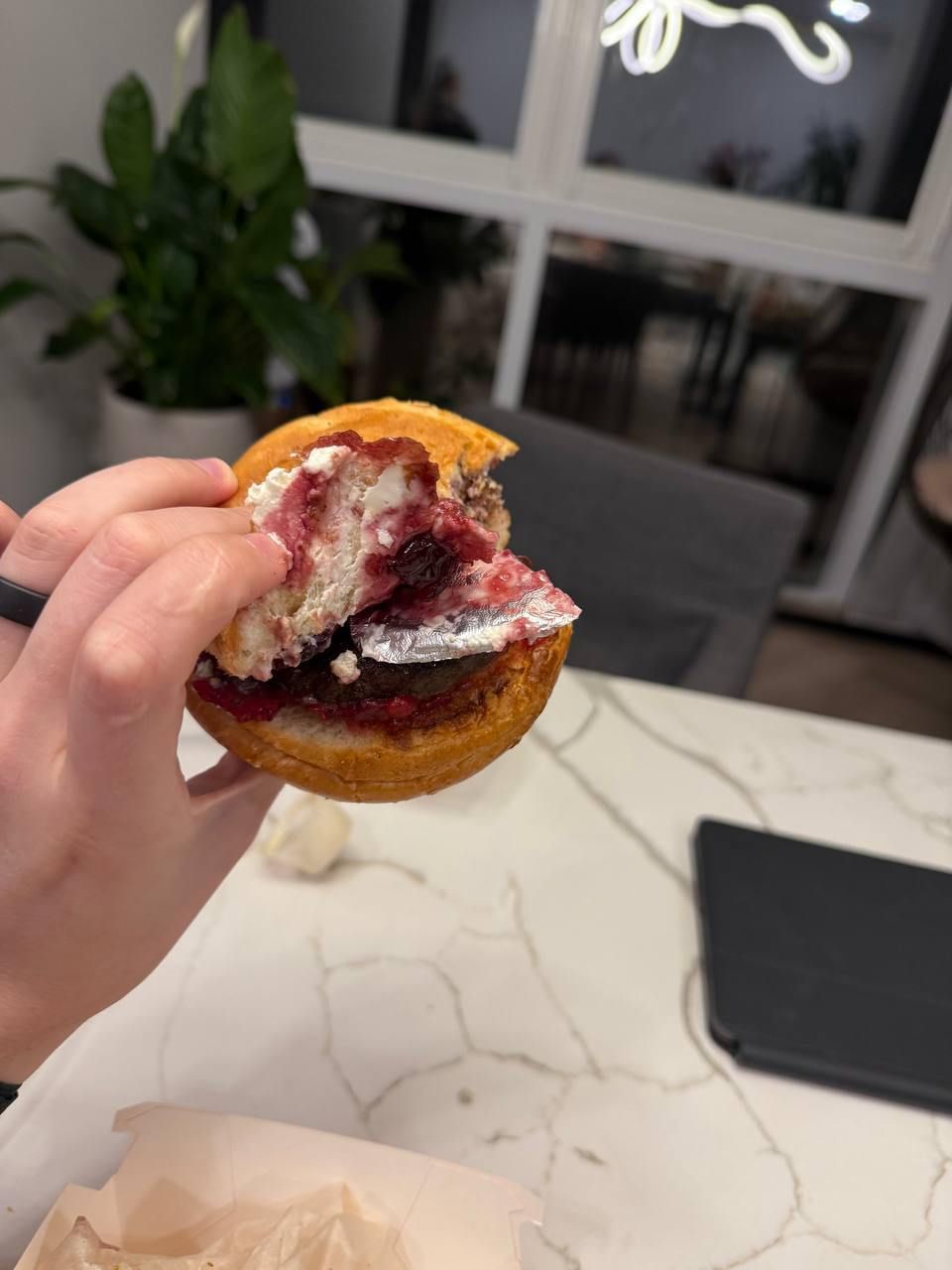 Техноблогер Romancev768 нашёл свёрнутую крышку из фольги в бургере из "ВкусВилл с горяча". Необычный ужин он заказал доставкой в Москве.