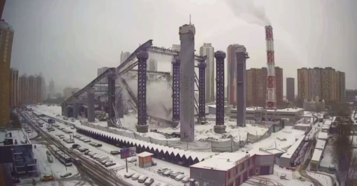Год назад там же рухнул строительный кран. Также во время демонтажа "СнежКома". Крановщик выжил, но получил серьезные травмы.