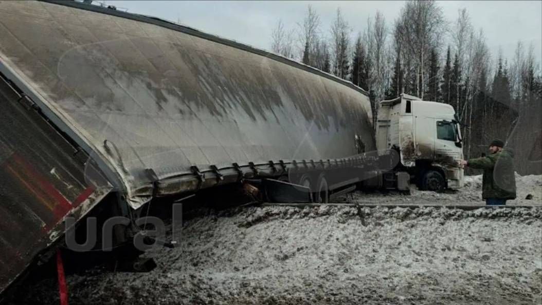 Водитель грузовика врезался в опору информационного табло рядом с Нижними Сергами. К счастью, никто не пострадал.