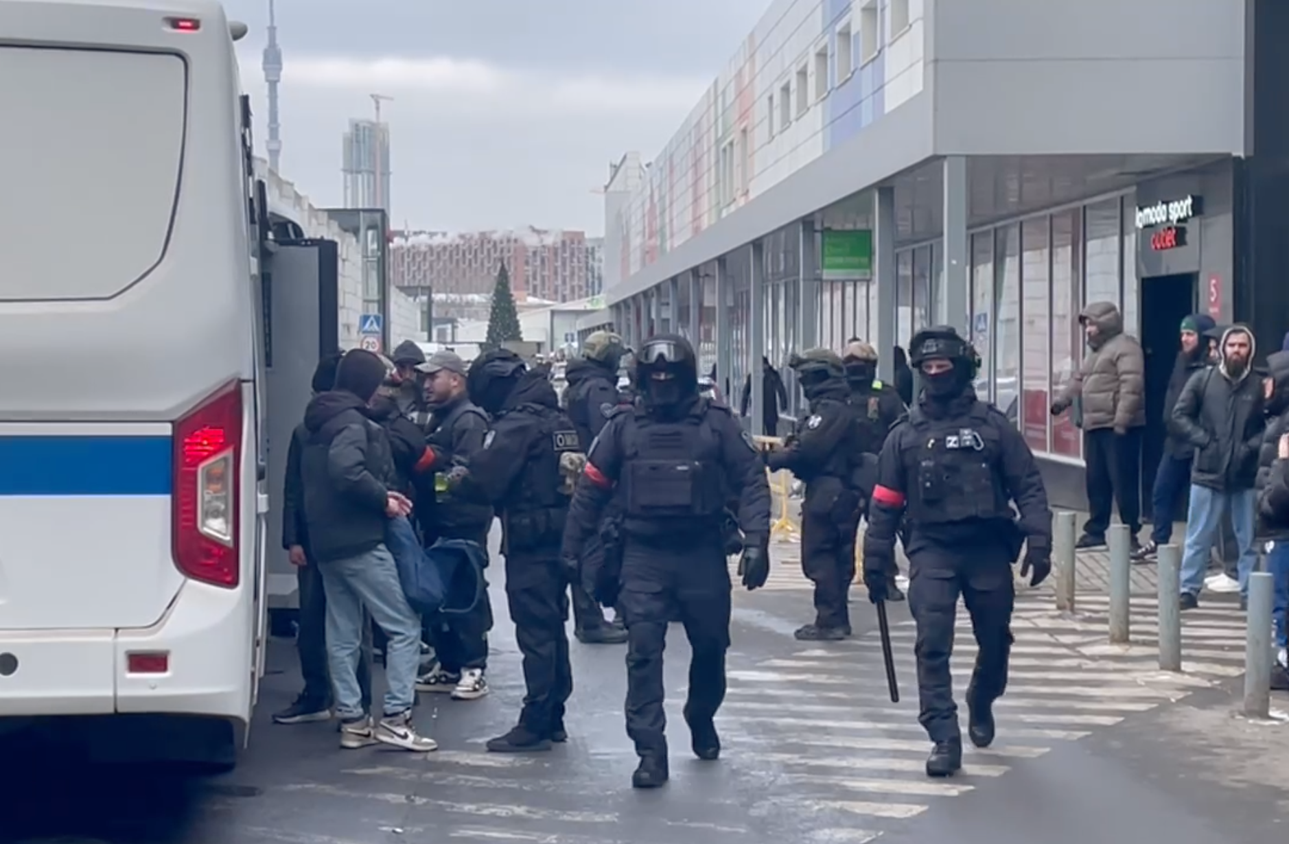 Облава на мигрантов на Савёловском рынке в Москве. Сотрудники ОМОН задержали около 100 человек.