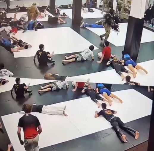 Перерыв на облавушку в одной из детских школ единоборств Краснодара. Где сотрудники полиции искали нелегалов, но нашли лишь пару десятков мокрых пятен на матах.