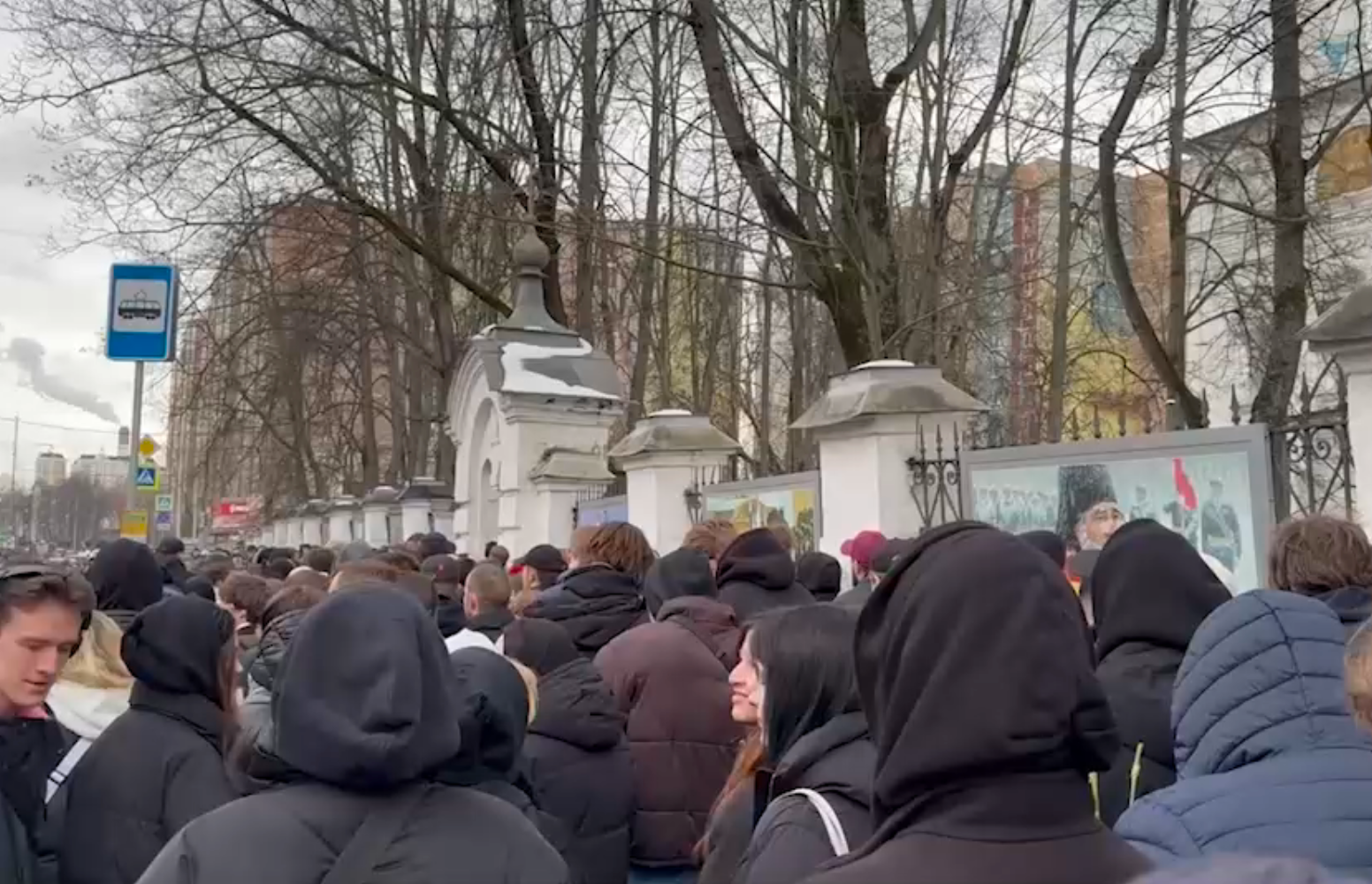 Больше тысячи человек скандируют "Паша Техник" у храма в Лефортово. Вход на территорию уже закрыли — людей слишком много.