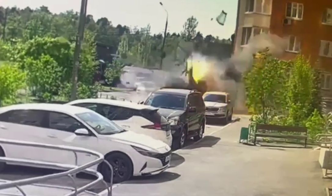 Момент взрыва автомобиля в Балашихе, в результате которого погиб генерал Генштаба МО РФ Ярослав Москалик. СВУ в Volkswagen сдетонировало в 10:40 утра, в момент, когда военнослужащий выходил из дома.