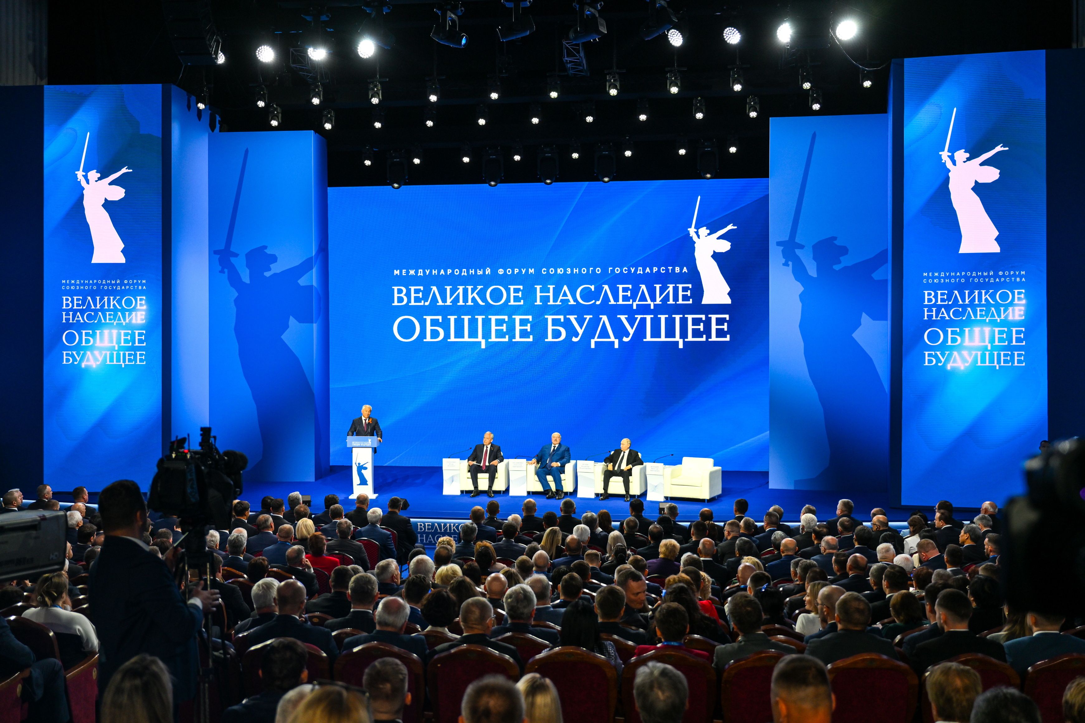Владимир Путин и Александр Лукашенко принимают участие в форуме "Великое наследие — общее будущее" в Волгограде.
