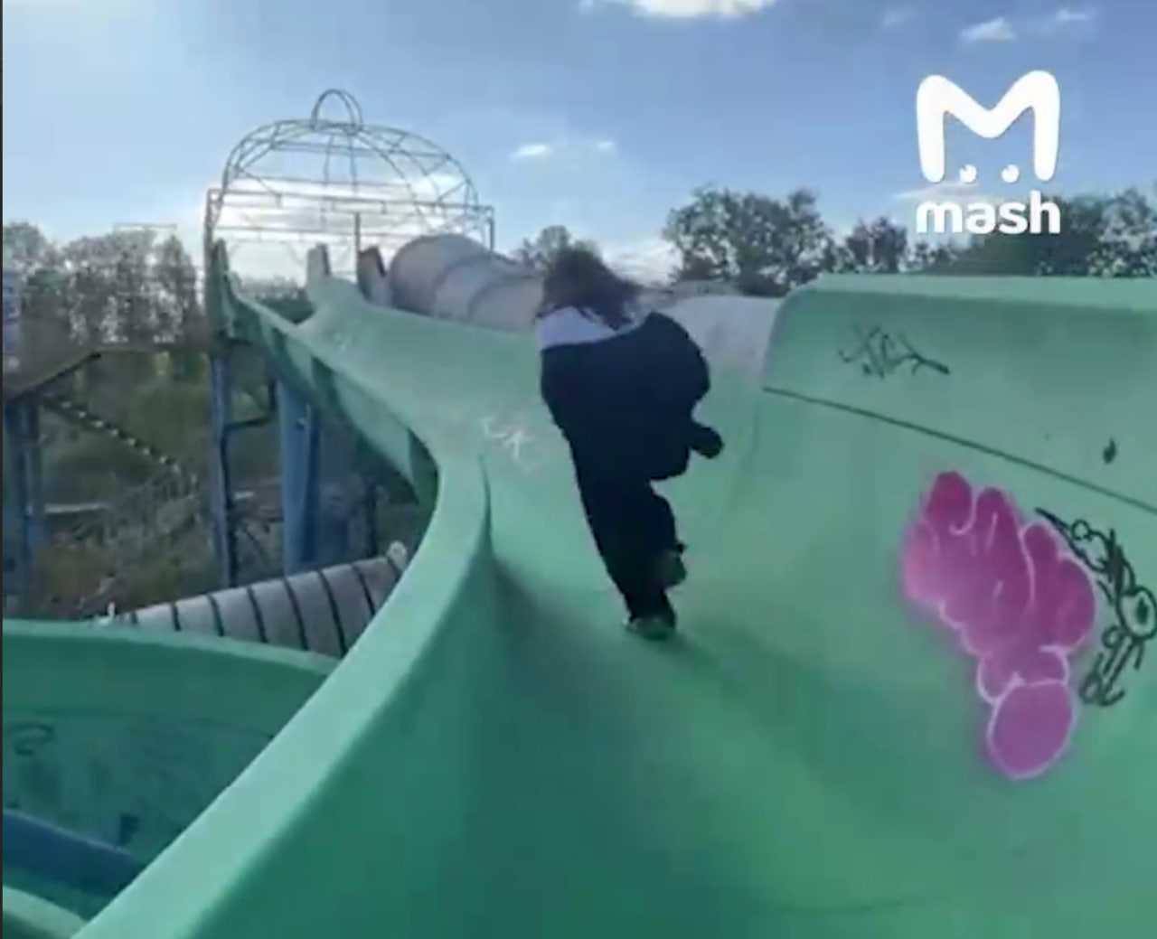 Результат на видео. Со слов местных, ежедневно больше 100 подростков бегают по комплексу, прогуливают уроки, катаются на горках без воды и записывают тиктоки.