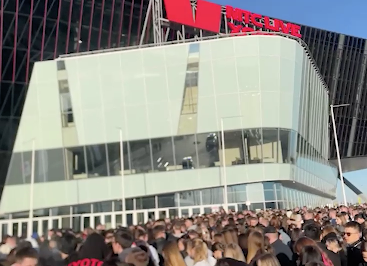 Со слов очевидцев, сначала запустили около 300 человек, однако почти сразу их развернули из-за пожарной сирены. Больше часа люди ютятся на улице в ожидании нетленок.