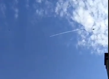 Момент уничтожения всушного беспилотника в районе подмосковной Коломны. Вертолёт Ка-52 сбил дрон ракетой "Игла".