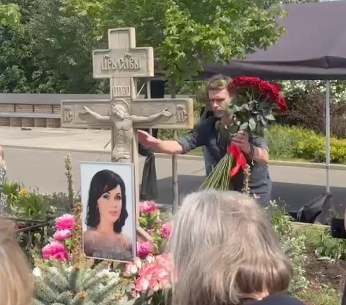 Семья Анастасии Заворотнюк приехала на могилу в день годовщины её смерти. На кладбище с цветами прибыли муж Пётр Чернышёв, мама Валентина и дочь Анна.