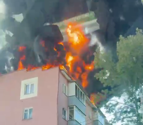 Горит крыша пятиэтажного дома в подмосковном Пушкине. Как рассказывают очевидцы, пожар возник из-за косяков во время ремонта кровли.