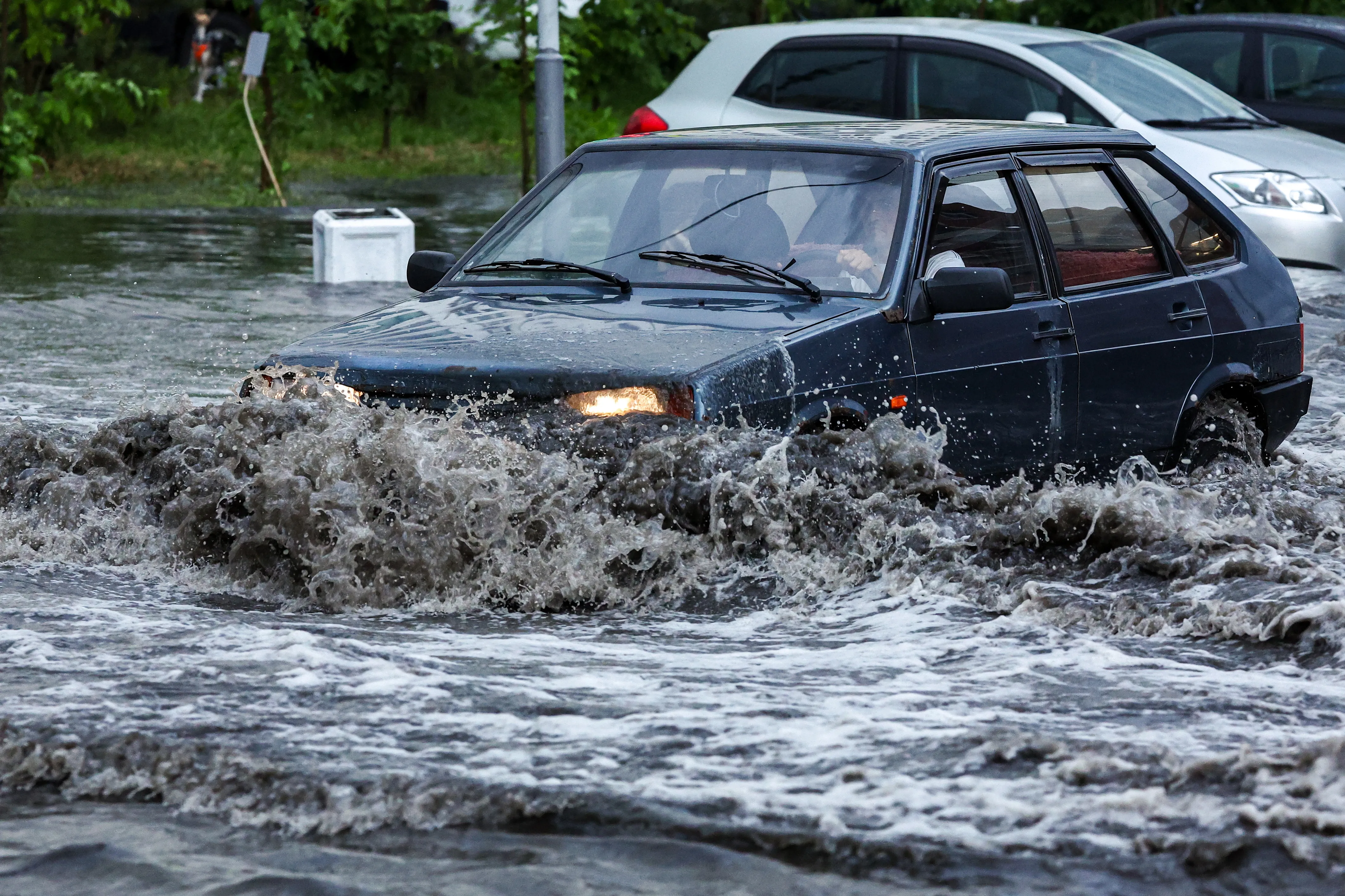 Как рассказывают очевидцы, под удар попали Mini Cooper, Volkswagen и два BMW с людьми во дворе на Автозаводской улице. Чтобы вылезти, им пришлось вызывать спасателей. Застрявших вытащили, сейчас ждут эвакуатор, чтобы достать из луж свои тачки.