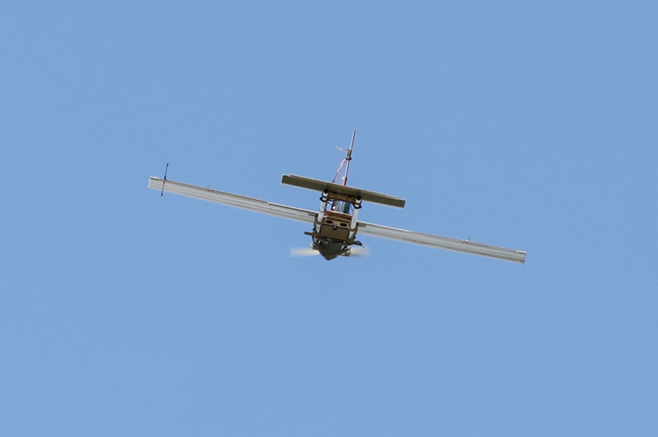 Сейчас БПЛА лежит в комнате, крыша кирпичного двухэтажного здания разрушена.
