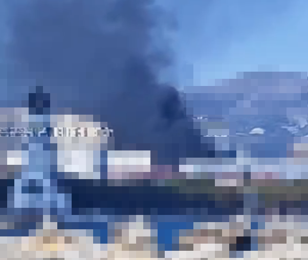 Обломки беспилотника побили пять домов и здание гостиницы "Новороссийск", парковки охвачены огнём. Окна и фасады зданий посечены осколками.