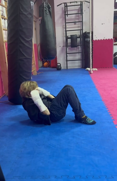 10-летний Глеб всего четыре дня назад вышел из лечебницы, но уже пришёл в зал — сначала хотел просто посмотреть на ребят, а в итоге сам встал на ковёр. Тренеры рады. Сказали, теперь ребёнок будет заниматься бесплатно.