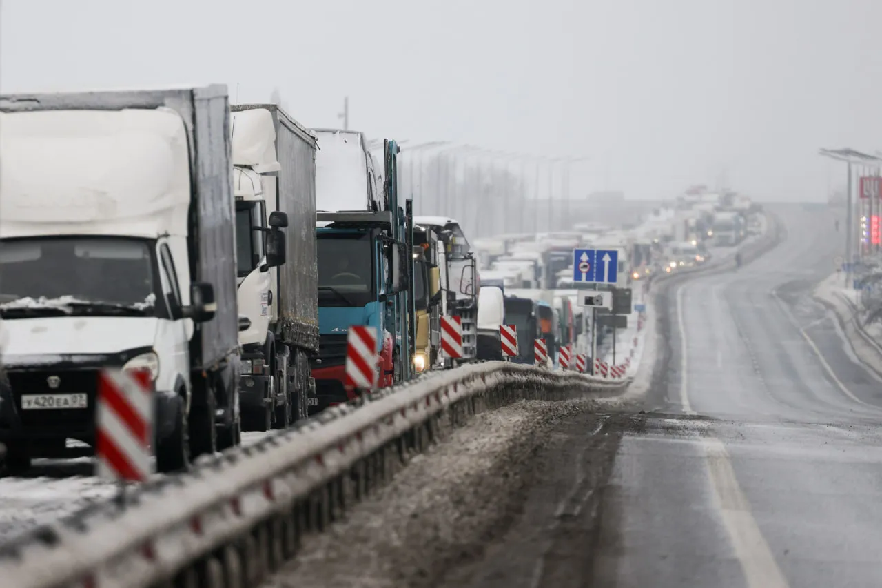 Сотни водителей больше двух часов стоят в 25-километровой пробке на трассе М-4 "Дон" Тульской области — в районе развязки на Богородицк произошло массовое ДТП с участием фур.