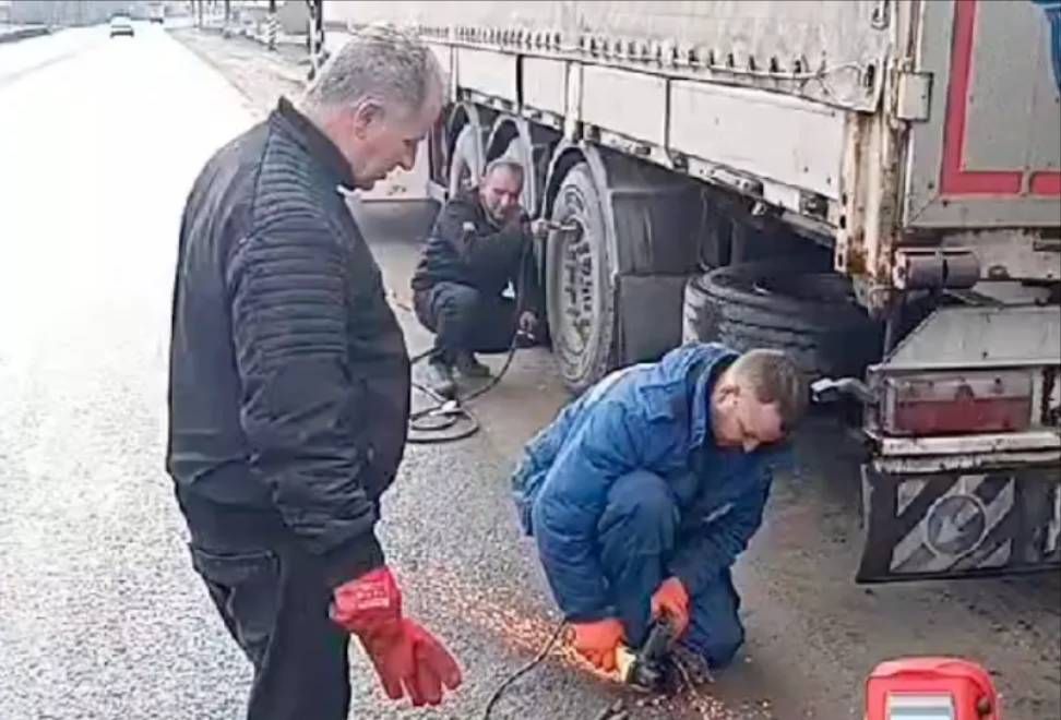 Оказалось, что у автомобиля пробит радиатор и ехать он не может. Приехавшая на помощь вторая иранская фура тоже оказалась бессильна — в момент ДТП поломалась буксировочная проушина, и взять на прицеп его не могли. Нужно было варить прямо на дороге.