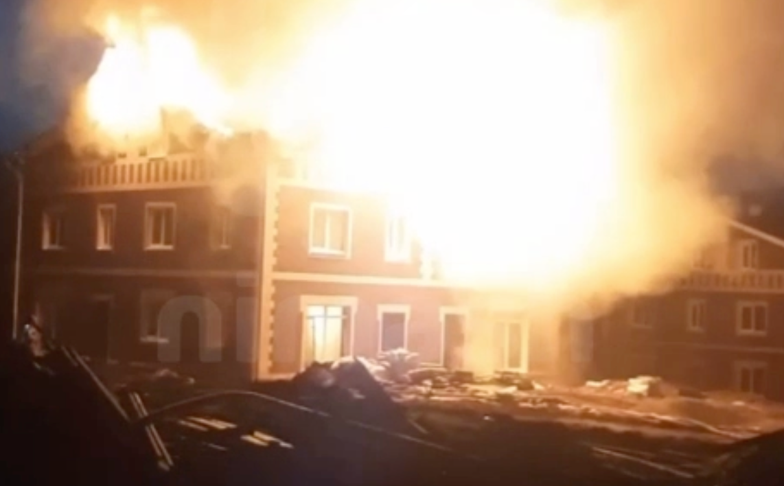 Газа, электричества и отопления в строящемся доме ещё не было. Когда приехали пожарные, полыхало 400 квадратов кровли. Вскоре она обрушилась внутрь здания.