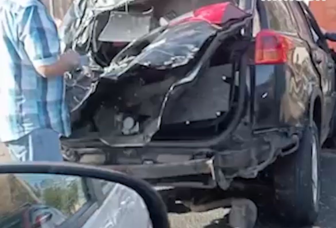 Водитель кроссовера не справился с управлением — подрезал фуру и влетел в общественный транспорт. В нём ехали 20 пассажиров, никто не пострадал.