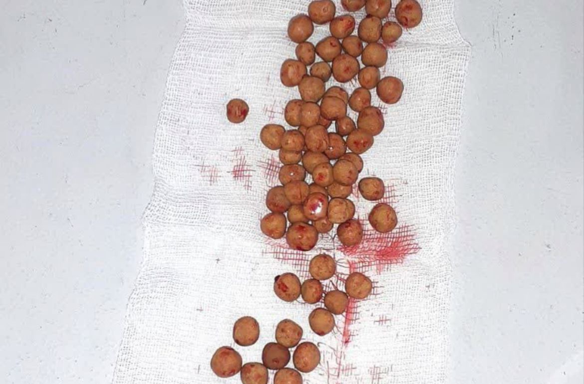Мужчина пошёл к врачам из-за постоянных болей внизу живота. Сначала медики сделали УЗИ и увидели только один шарик, потом полезли внутрь мочевого пузыря и нашли целую гору.
