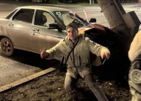 Зумеры устроили фотосессию у покорёженной машины, на которой попали в аварию на Московском шоссе.