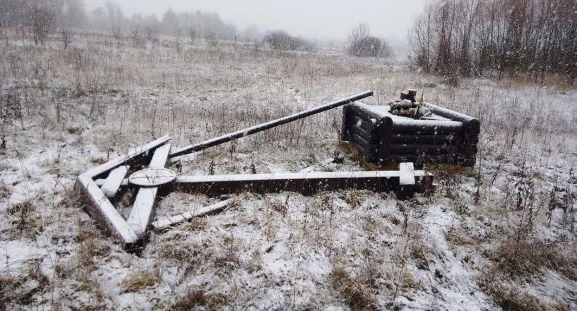 Вандал спилил поклонный крест на въезде в посёлок Тумботино.