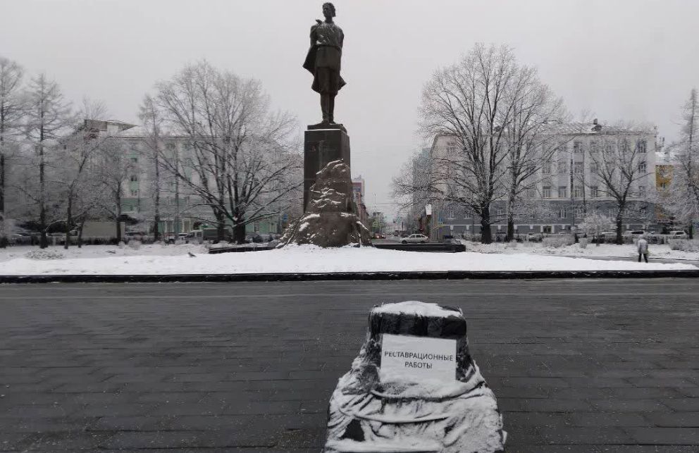 Миниатюрный памятник не даёт вандалам покоя. Сначала копию писателя спилили в начале декабря, после реставрации прошёл месяц и вот опять.