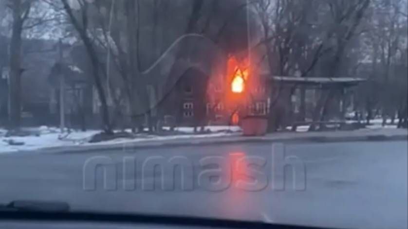 Пожар в деревянной двухэтажке на Матросской – горит одна из квартир.