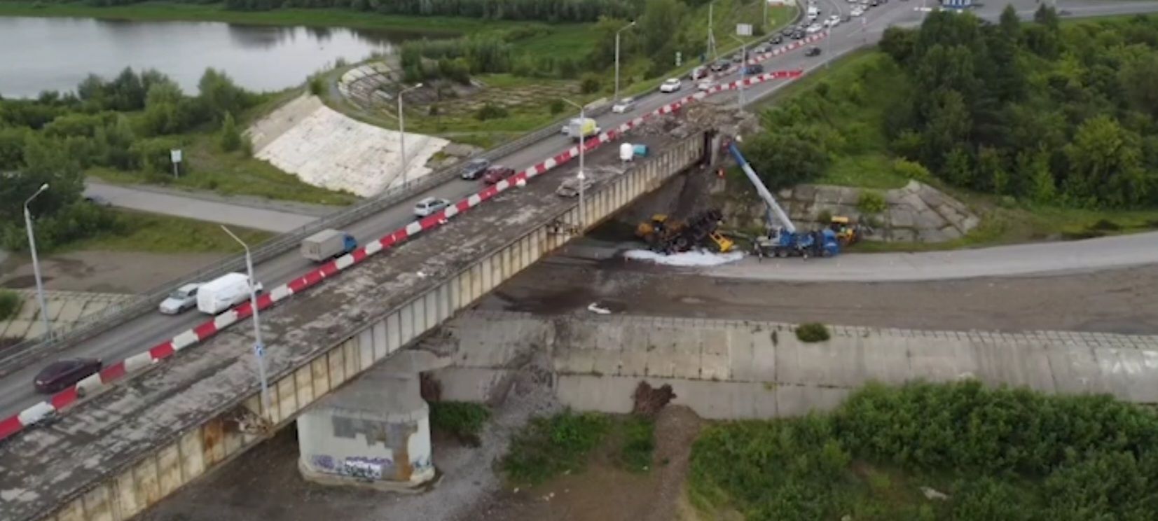 Это могли быть кадры, выполненные каскадёром, но нет. Томич успел выпрыгнуть из автокрана прямо во время падения с Коммунального моста.