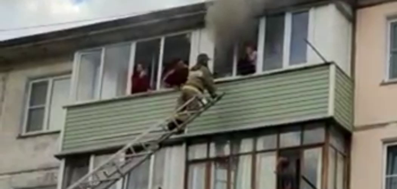 В доме по улице Федоренко на пятом этаже горели вещи и мебель. По автолестнице спасатели вытащили 10-летнего ребёнка, который был в квартире один. Когда убедились, что с ним всё хорошо, пошли проверять ещё.