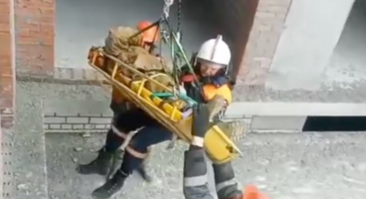 Рабочий упал на объекте по Кедровой улице. Спуститься вниз сам он не смог. Бригада МАСС положила пострадавшего на носилки. С помощью специального оборудования мужчину передали врачам.