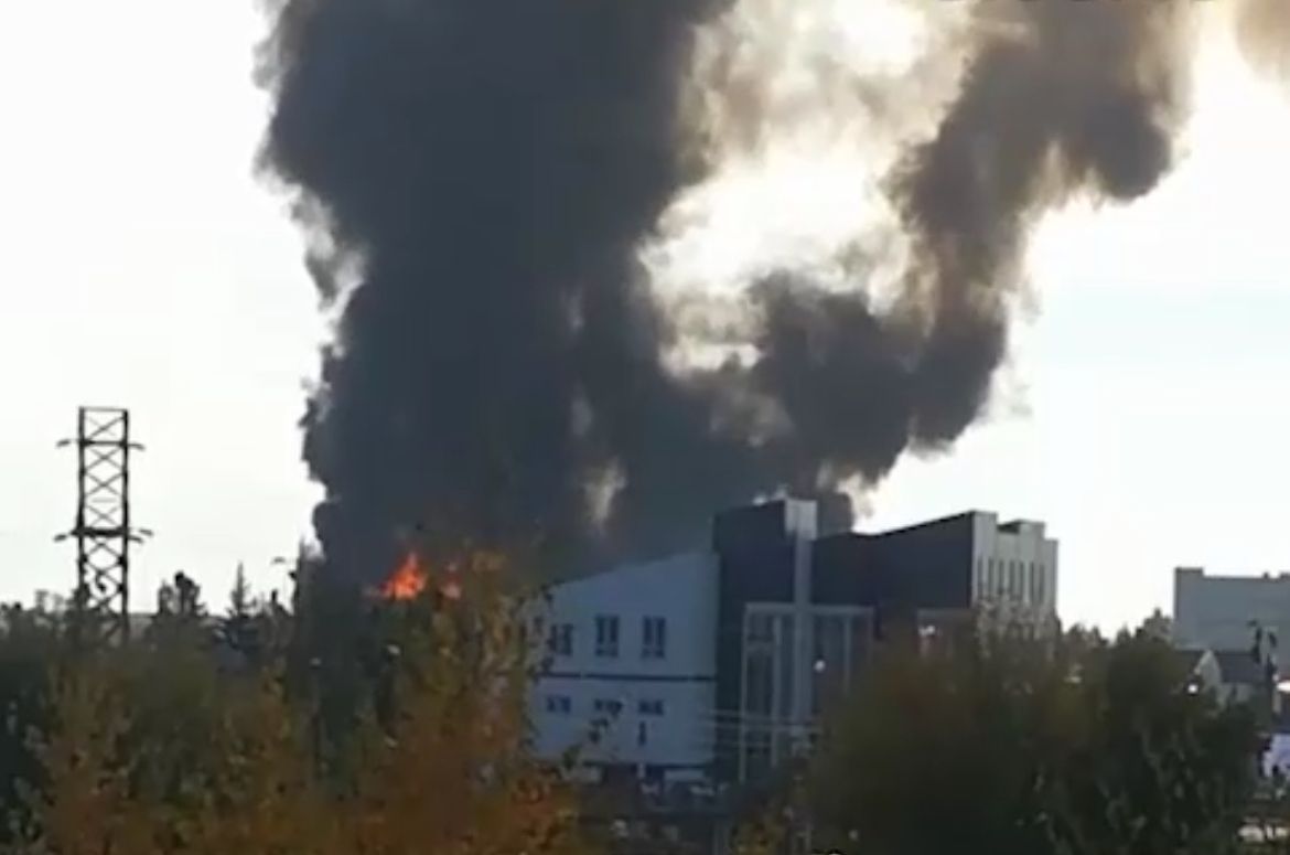 Площадь пожара в здании мебельной фабрики в Барнауле выросла до 6000 квадратов.