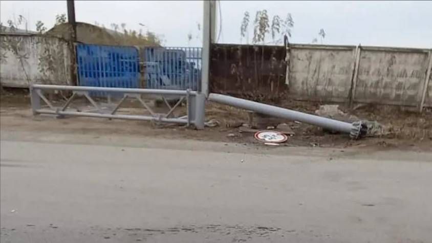 Грузовик врезался в хилую конструкцию и отправил её на тот свет. Местные считают, что это сделали специально.