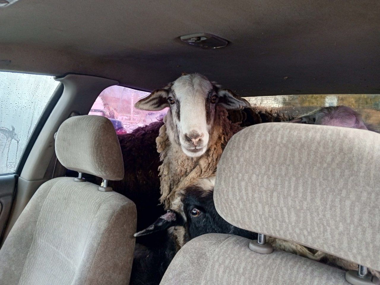 Восемь баранов ехали непристёгнутыми в салоне легковушки на трассе под Омском. Оказалось, их украли.
