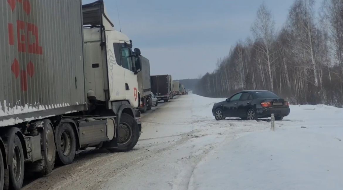 Пробка начинается через несколько километров от Мошково и заканчивается за 54 километра от Болотного.