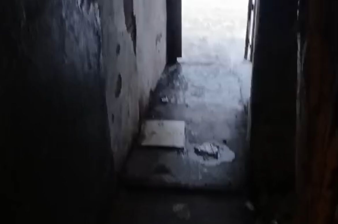 Лестница обвалилась на первом этаже подъезда общежития в Черногорске.