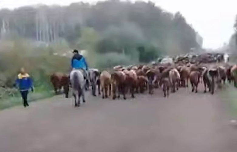 "Погнали бесцеремонно мой скот! В белом — нанятые пастухи — режут мой скот!"