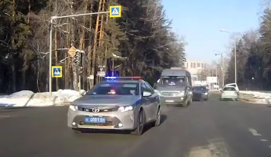 Правительственный кортеж выехал на красный по встречке и чуть не снёс "Ниву" на перекрёстке в Новосибирске.