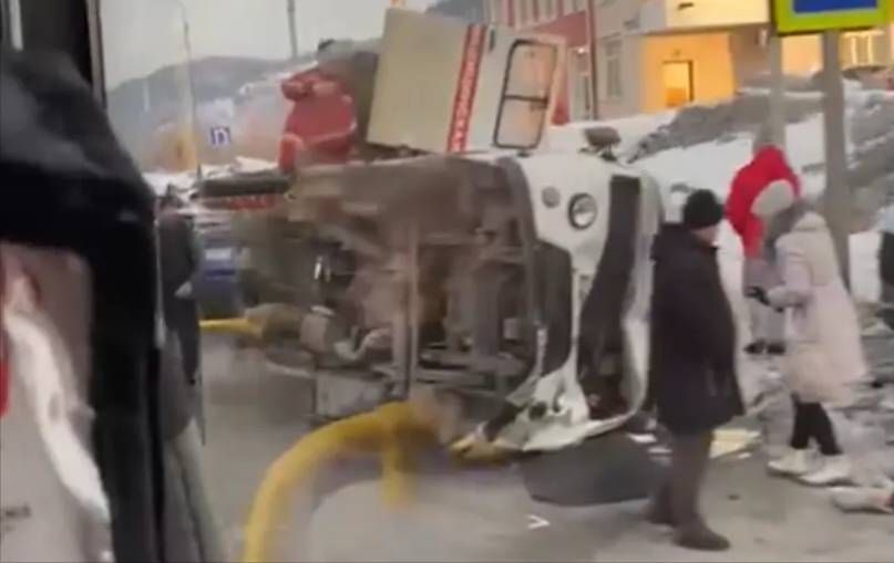 Предварительно, 34-летний мужчина, два фельдшера и пациент получили травмы.