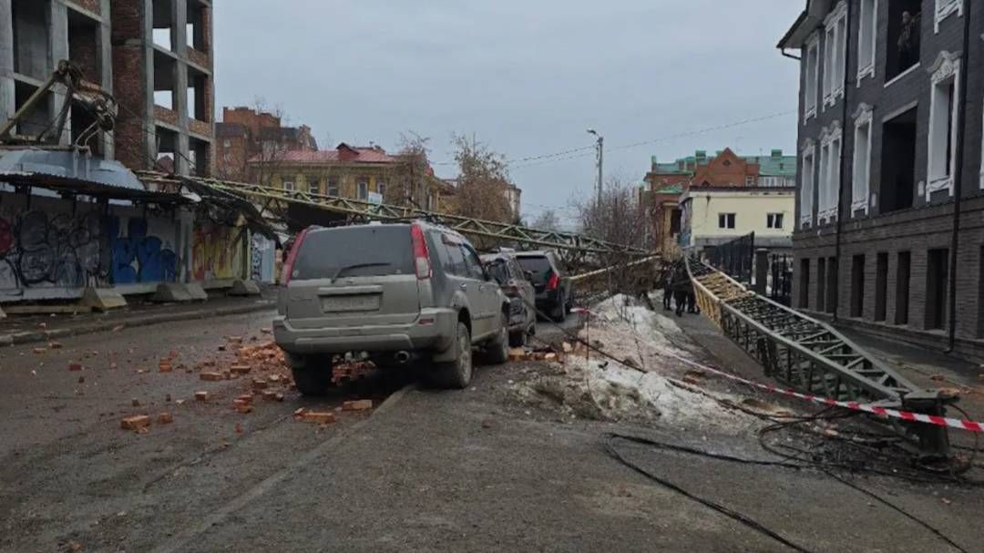 Конструкция упала на Белинского у багетной мастерской. Зацепило машины, а всё вокруг засыпало кирпичами.