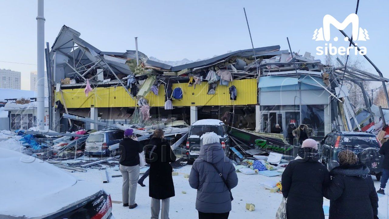 Крыша торгового центра рухнула в Новосибирске.