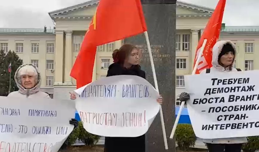 Коммунисты вышли на новый пикет — теперь не просто против бюста Врангелю, а против ректора ДГТУ Бесариона Месхи, который дал на него добро.