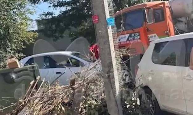 Мощная авария на Нансена — легковушка на полной скорости влетела в бетономешалку, которая выехала на встречку.