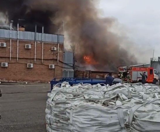 В Аксае на Новочеркасском шоссе горит металлический склад целлюлозной продукции. Пожар 2-го ранга, МЧС уже на месте.
