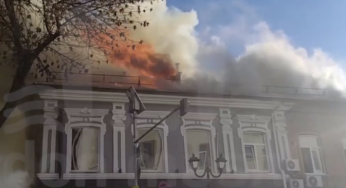 Горит крыша дома Серафимовича, 84. Там находятся кальянная "Мамуния" и пиццерия "Искра".