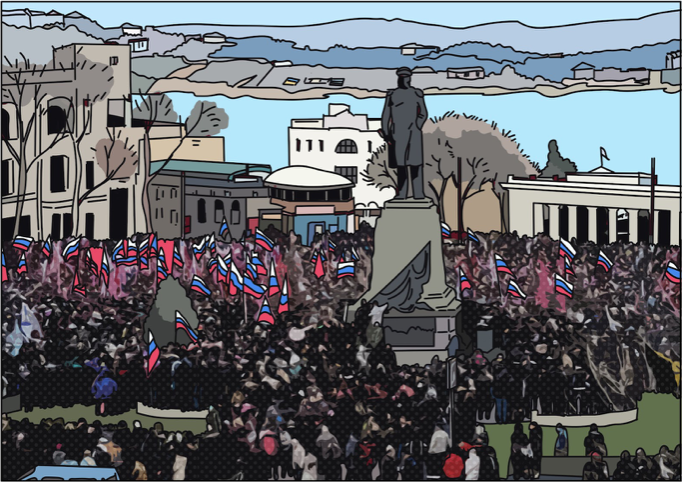 В день, когда приехали представители Киева "наводить порядки" на Ленина, всю улицу и площадь Нахимова заняли люди, выдавили незваных гостей, провели народное вече, — казалось, что собрался весь город. И все были едины в своём НЕжелании подчиняться кучке, устроившей госпереворот, и в желании вернуться в Россию.
