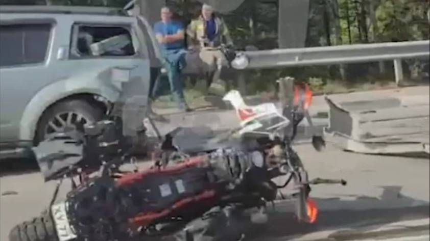 Жёсткое ДТП под Ялтой: столкнулись легковушка, внедорожник и мотоцикл.